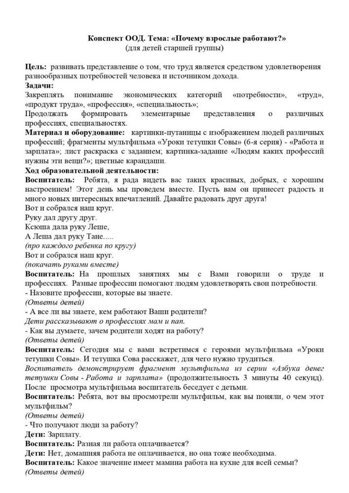 Конспект ООД. Тема: «Деньги всякие нужны» (для детей старшей группы)