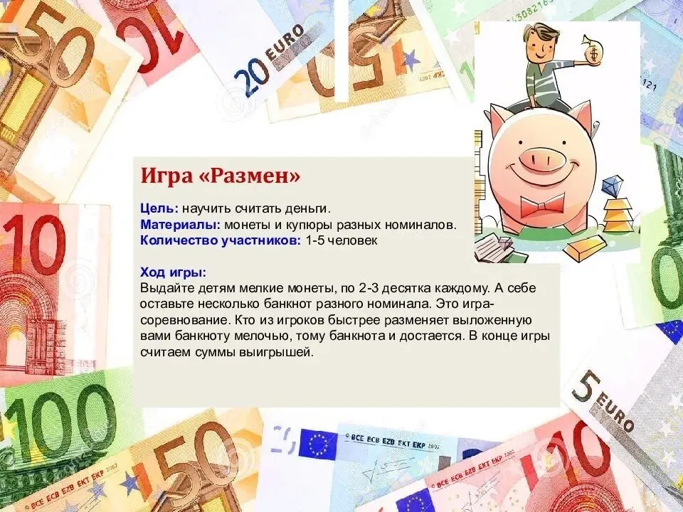 Материал и оборудование: деньги, монеты, банкноты, пластиковая карта.