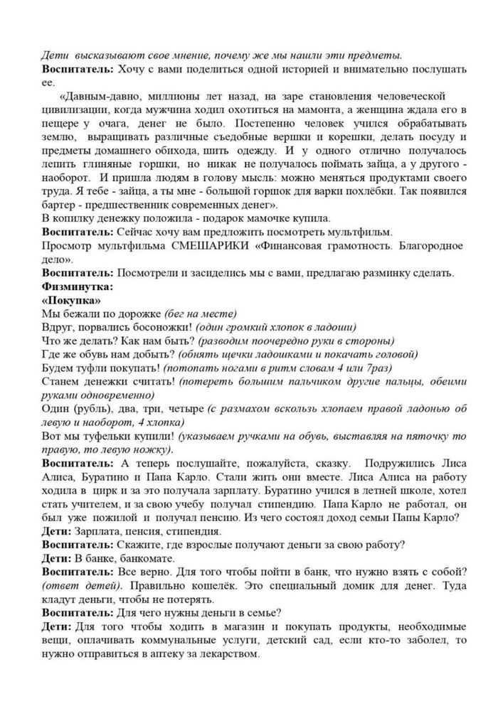 Воспитатель: Правильно, чтобы копить деньги. Но мне очень интересно узнать, а зачем людям копить деньги? Что на них можно купить? Ответы детей